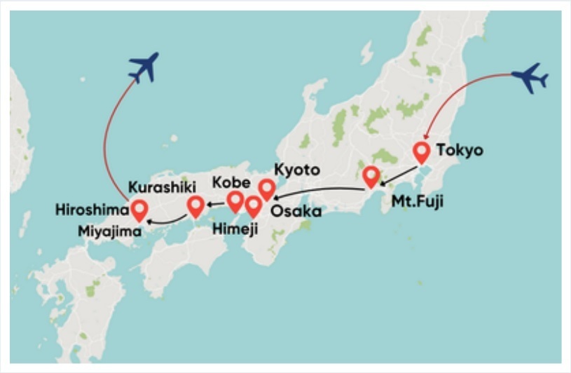 From the buzzing energy of Tokyo and the ancient temples of Kyoto to the peaceful deer of Nara and the vibrant food scene in Osaka, this enriching itinerary also takes you further — to the flavorful charm of Kobe, the elegance of Himeji Castle, the relaxing hot springs near Mt. Fuji, and the moving exhibits of Hiroshima’s Peace Memorial Museum.